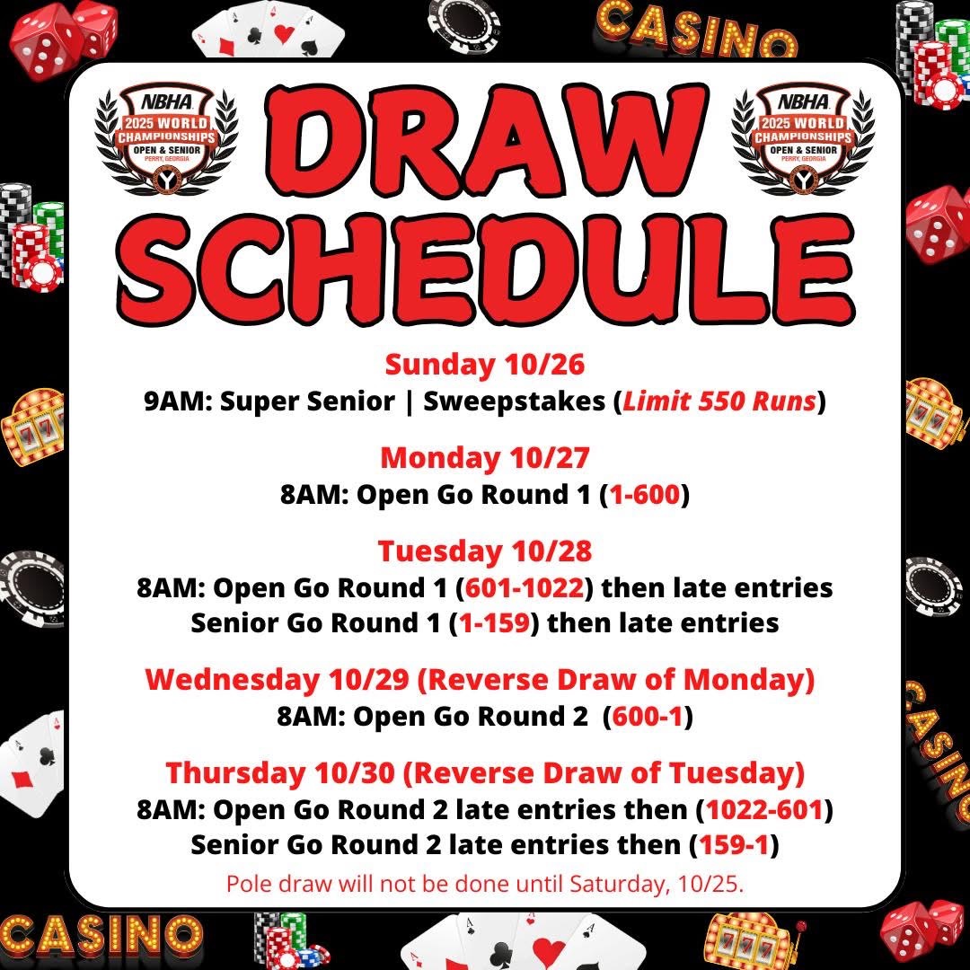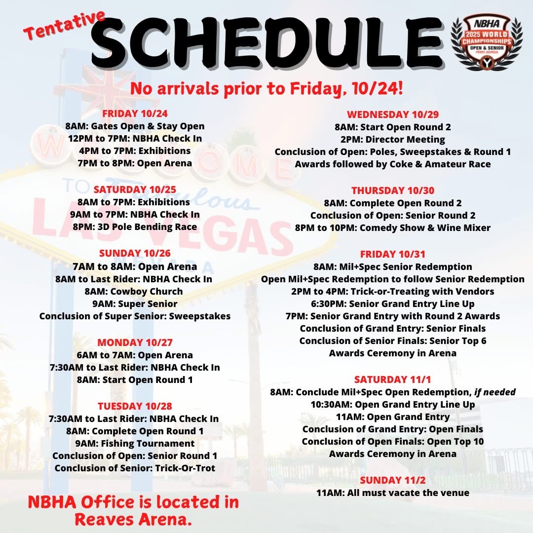 Oct 25 – Nov 1 – NBHA Open & Senior World Championships info: