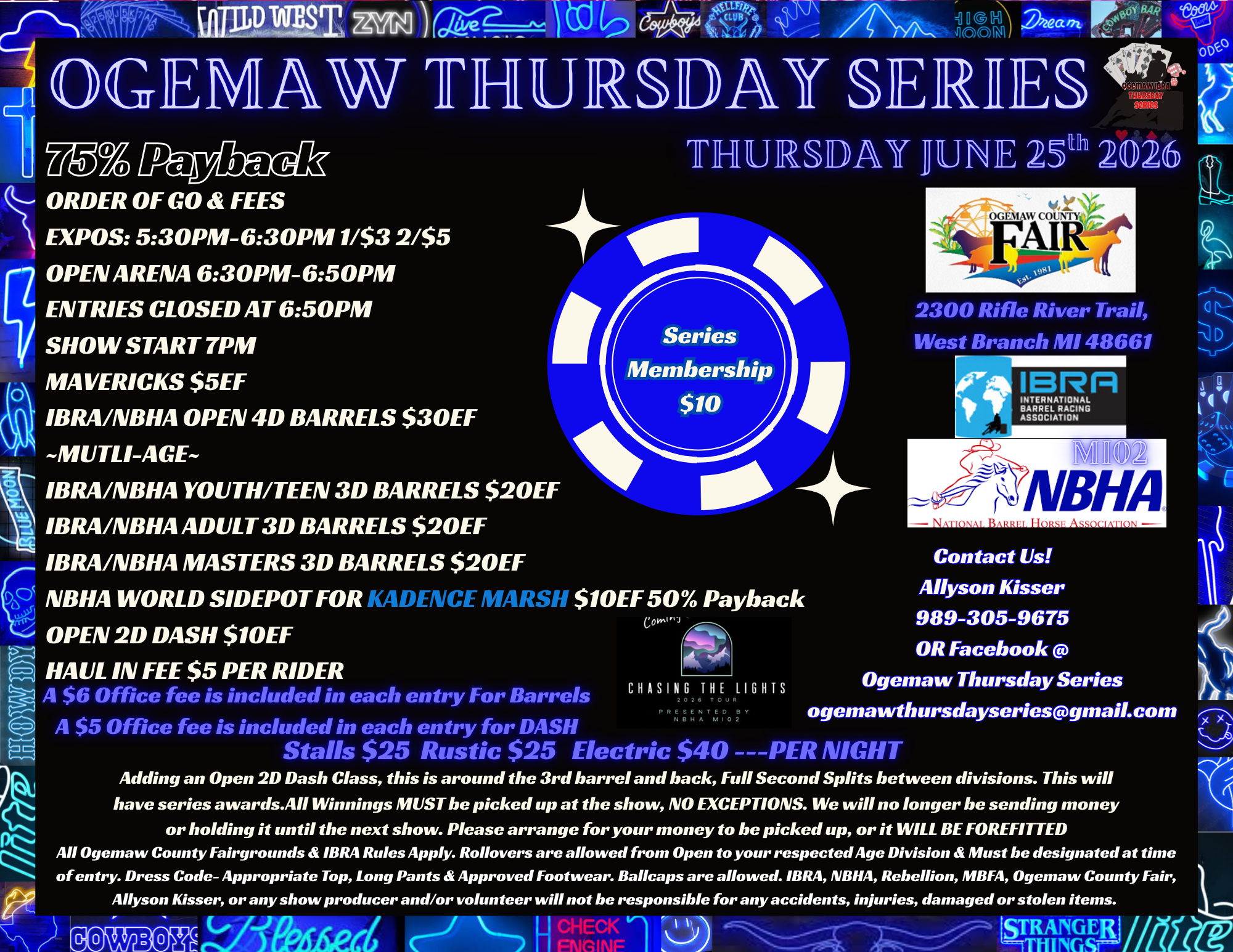 | June 25 | Ogemaw Thursday Series | Ogemaw County Fairgrounds 2300 Rifle River Trail West Branch, MI 48661 | MI 02 IBRA |